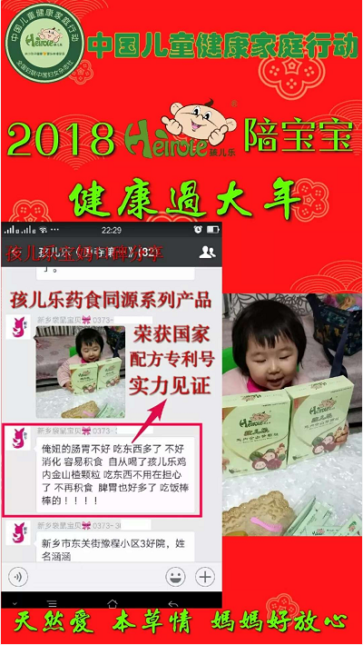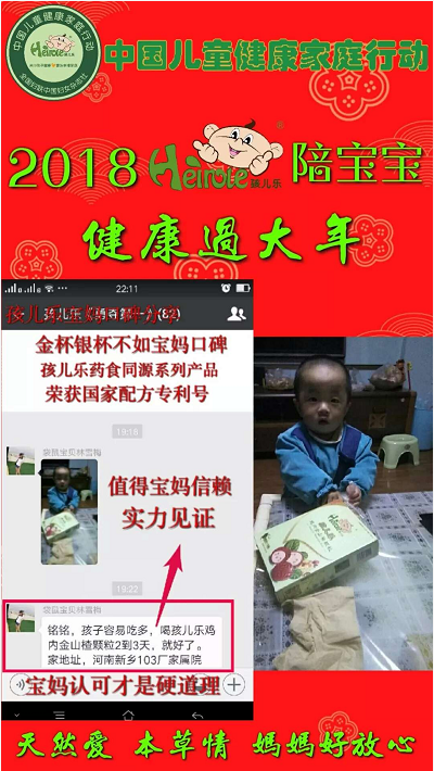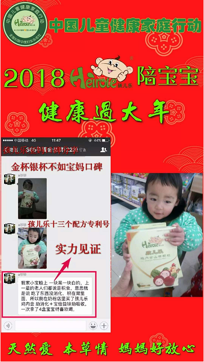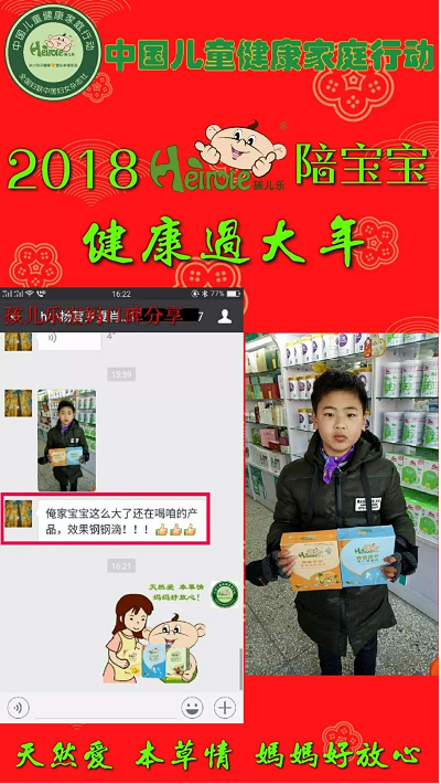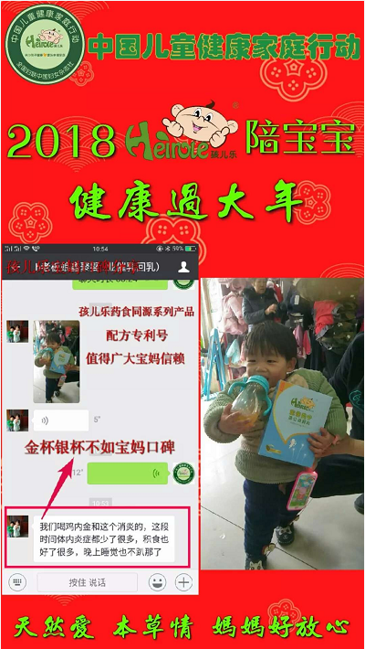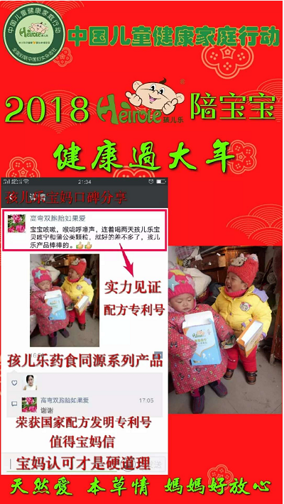 除了日常生活習(xí)慣,飲食方面的注意外,預(yù)防也很關(guān)鍵。孩兒樂可以有效緩解或解決寶寶消化不良、腹瀉、吸收功能不好等問題,還能增強(qiáng)寶寶免疫力,維持腸道平衡。在寶貝的成長過程中,孩兒樂的作用十分明顯,是爸爸媽媽們不折不扣的育兒好幫手。2018孩兒樂陪寶寶健康過大年活動順利開展,來一睹代言人的風(fēng)采吧! 溫馨提示:因活動參與人數(shù)眾多,分批展示。