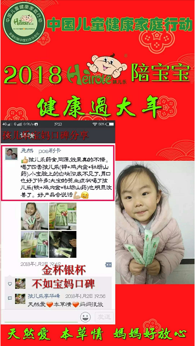 除了日常生活習慣,飲食方面的注意外,預(yù)防也很關(guān)鍵。孩兒樂可以有效緩解或解決寶寶消化不良、腹瀉、吸收功能不好等問題,還能增強寶寶免疫力,維持腸道平衡。在寶貝的成長過程中,孩兒樂的作用十分明顯,是爸爸媽媽們不折不扣的育兒好幫手。 2018孩兒樂陪寶寶健康度春季活動順利開展,來一睹代言人的風采吧!
