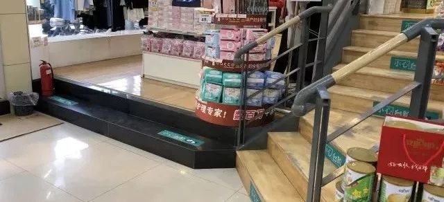 進門后有臺階:將大門改到臺階后面或將臺階改建并整體往店內移,保證大門與臺階的距離至少 1.2M 以上。