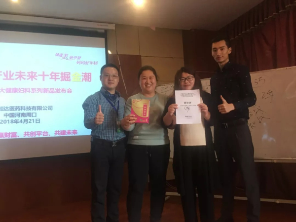 2018年4月21日,知達醫藥妍亭舒婦科產品啟動會議在河南周口隆重召開,此次會議特別邀請到湖南知達醫藥科技有限公司華南戰區事業部資深總監李華峰先生、培訓事業部南區代總監彭元杰老師、事業伙伴及區域運營精英團隊齊聚一堂,共同助陣新品首發,見證這一輝煌時刻! 4月22日,對周口地區核心客戶,進行專業的嬰童中醫養護知識培訓,幫助母嬰連鎖更好的呵護當地寶寶健康成長!普及中醫養護文化,傳承華夏精髓,促進當地健康產業發展。
