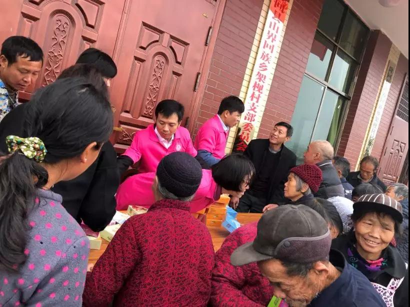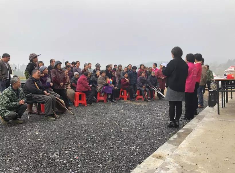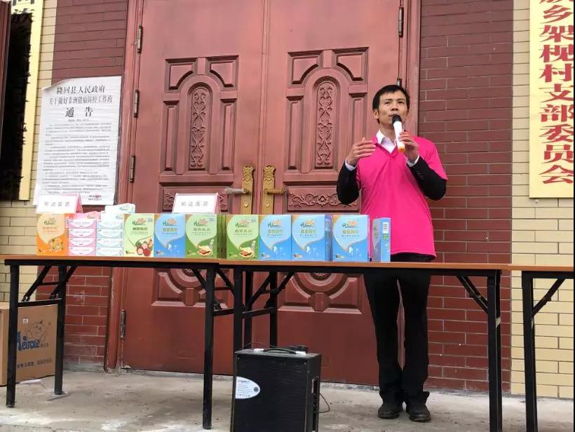 —尹主任問候了到來的村民們,并表示婦女兒童工作委員會對架枧村撫貧困人們的關心 ——李總對村民們的到來表示歡迎,并向大家介紹了“母嬰家庭健康促進計劃”和此次帶來的愛心捐贈物資