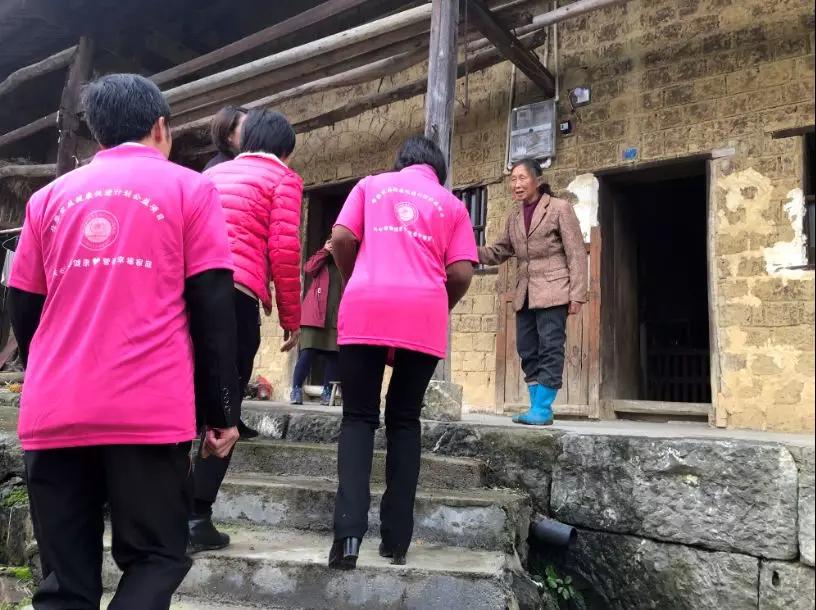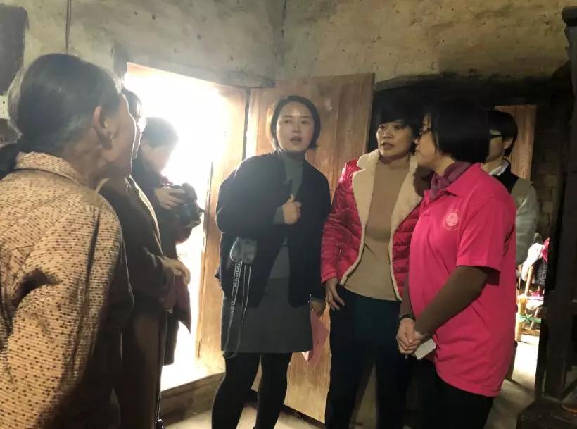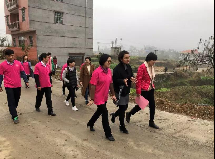 湖南省人民政府婦女兒童工作委員會辦公室主任尹素云女士、架枧村扶貧工作負責人金媛女士、知達醫藥總經理李君佩女士及其他隨行人員來到架枧村與村支書黃民權先生及村主任黃軍剛先生共同了解當地的情況。
