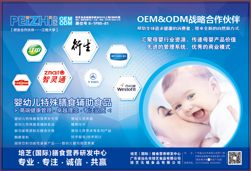 汕頭市培芝食品有限公司是國內較專業化的嬰幼兒配方食品研發企業。公司擁有先進生產設備及研發技術,潔凈生產車間(十萬級GMP生產車間),完善的食品安全管理體制確保產品安全和品質可靠性。專業生產嬰幼兒營養米粉(片狀、粉狀)、嬰幼兒高端奶米粉、腹瀉期營養素、營養復合粉、嬰幼兒特殊膳食系列產品,嬰幼兒固體飲料沖劑,同時為企業提供OEM、ODM成品一條龍服務。