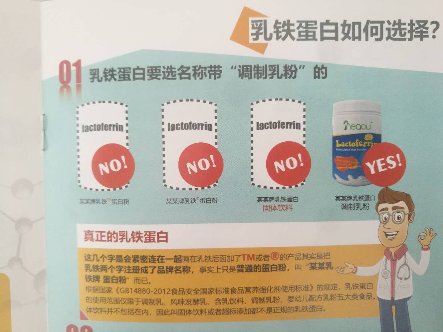 ● 區分乳鐵蛋白真假如下; 以上三點均不是真正的乳鐵蛋白,真的的乳鐵蛋白是XXX牌乳鐵蛋白調制乳粉。