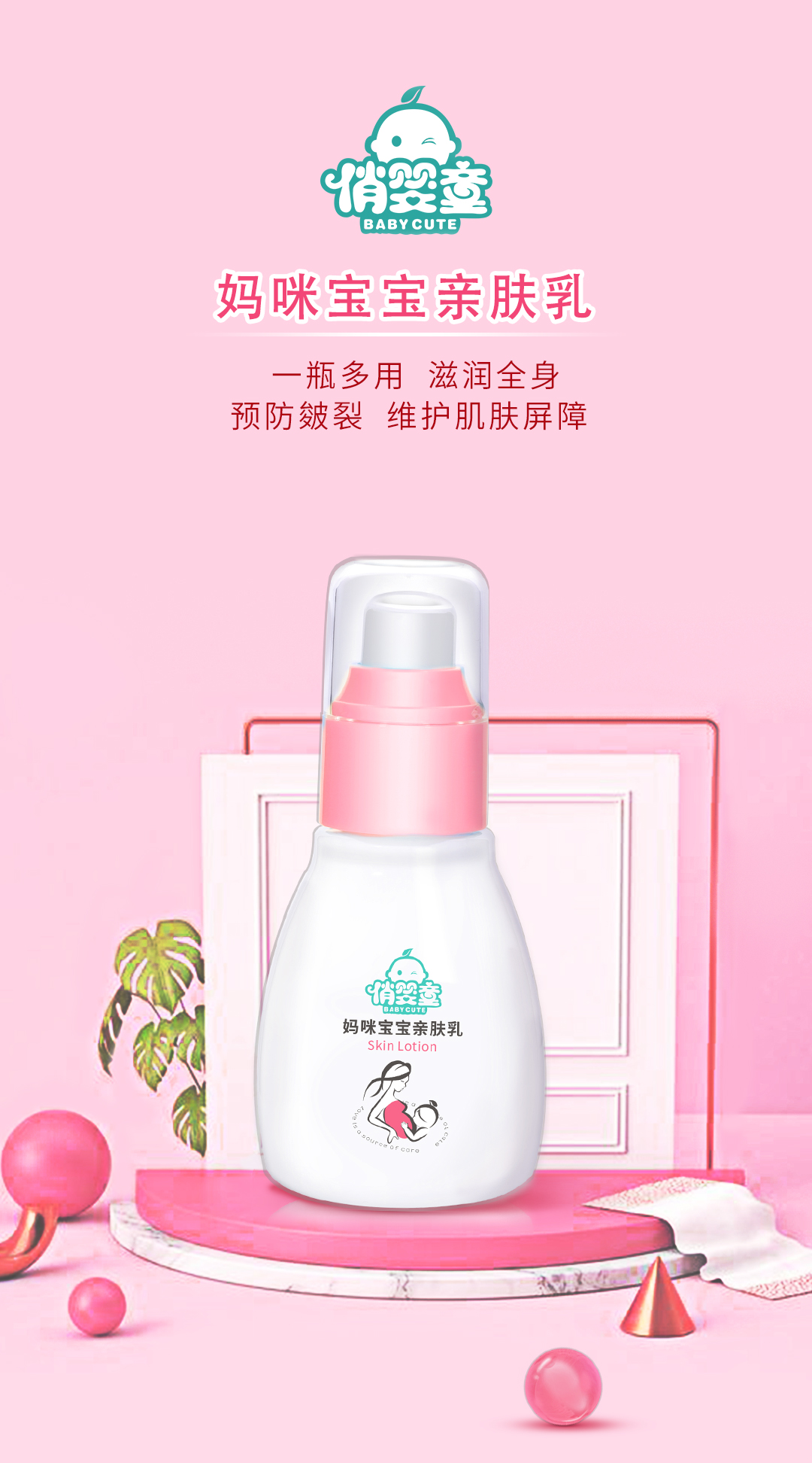 俏嬰童媽咪寶寶親膚乳是江西源生狼和生物科技有限公司旗下的母嬰洗護品牌產品。公司專業制藥16年,擁有國內外先進的制藥醫療技術及團隊,專注于皮膚研究,秉承“愛自源生呵護”的品牌理念,為其提供從清潔、防護到修復的全系列高品質母嬰洗護產品。