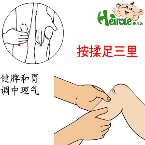 按揉足三里:足三里在膝蓋正下方三寸再往外側一寸的地方,用拇指或中指指腹按揉。
