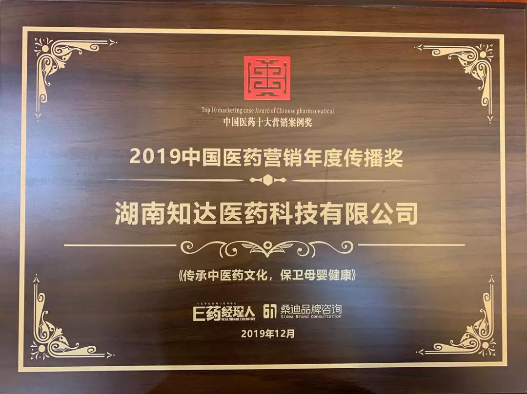 時代浪潮變化中的醫藥市場,每一個營銷案例都充分體現著品牌價值,每一個營銷案例都浸透著醫藥人的心血智慧!互聯網時代,人類社會科技的巨大進步,更要求醫藥人與時俱進,引領行業樹標立桿、不斷創新,助力國家品牌戰略。 湖南知達醫藥科技有限公司榮獲 “2019中國醫藥營銷年度傳播獎”