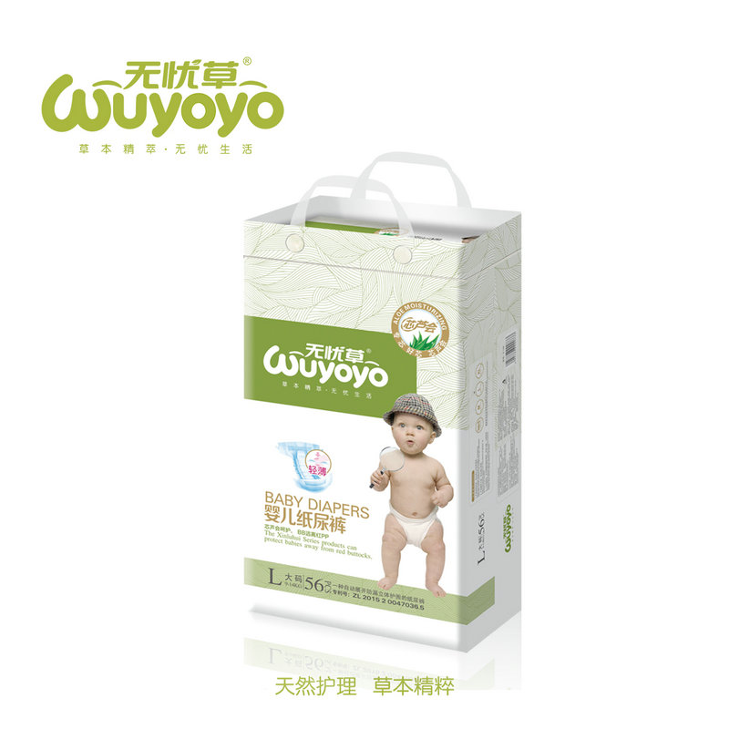 無憂草紙尿褲由廣州花花日用品有限公司研發出品,長達八年的市場調查,接納千萬消費者的寶貴建議,最終研發出擁有蘆薈芯體的紙尿褲——無憂草紙尿褲,蘊含3%的蘆薈精華,抗菌消炎、滋潤肌膚,能夠有效降低紅屁屁的概率,是一款天然護理紙尿褲。 無憂草紙尿褲采用漩渦式柔綿表層,有超過1000個透氣孔,能夠迅速將尿液、濕熱氣、氨氣倒入吸收芯體內,小屁屁舒適干爽,另外特別添加“活性因子”幫助皮膚吸收,其強大的防后漏工藝,采用高級彈性腰圍,自然貼合bao--bao背部曲線,防止尿液后移,360度全方位保護,免除后漏之患!