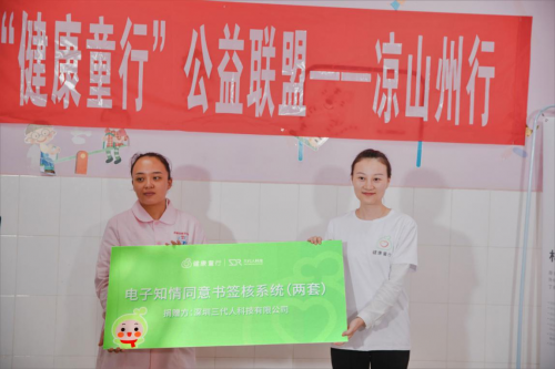 (深圳三代人科技有限公司向門診捐贈智能設備) 此次公益活動得到了西昌市疾控中心免疫規劃科科長周昌秀的高度評價,她表示,感謝“健康童行”公益聯盟的愛心行動。希望更多的企業和社會組織,能夠與我們共同努力為孩子們的健康成長而貢獻力量。西昌市疾控中心預防接種門診周琬如科長代表門診及家長接受捐贈并表示,希望“健康童行”公益活動長久地辦下去,能夠幫助到更多的基層接種門診和兒童。
