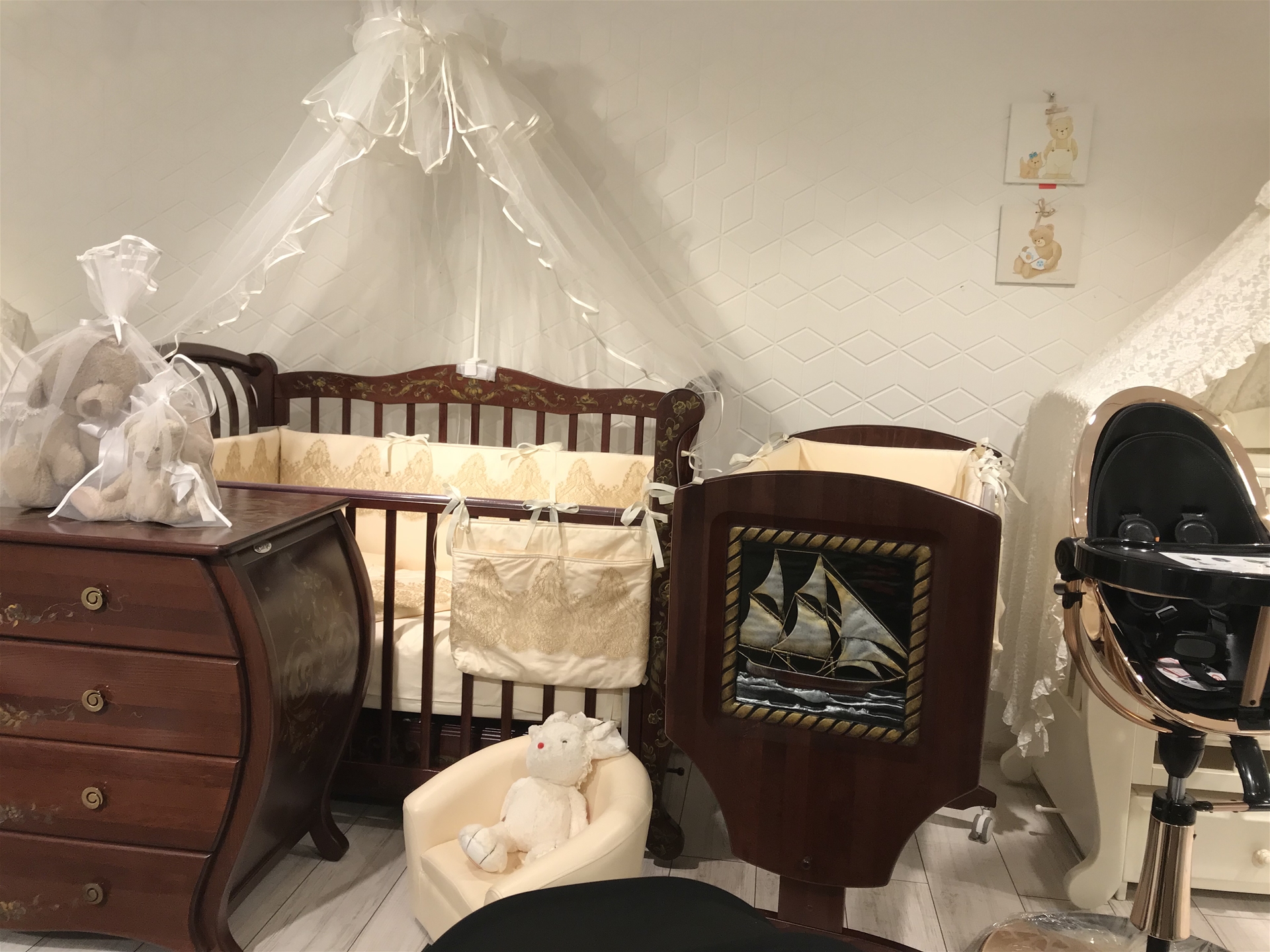 直至今日,liel依然尊重著原木質(zhì)樸的加工方法,手工加工與機(jī)器加工并行。在功能配置上,幾乎全系產(chǎn)品都標(biāo)配了“鐘擺可控?fù)u籃”,“可調(diào)側(cè)圍和床板”。這些在其他品牌是看不到配置和樂趣,即使要求單獨(dú)購買亦不會簡單實(shí)現(xiàn)。奧地利的滑軌,西班牙手工拉手等所有看得到和看不到的配件都帶著頂級的品質(zhì)。只有親自體驗(yàn)的時候才能感受到liel憂郁的俄式高貴。