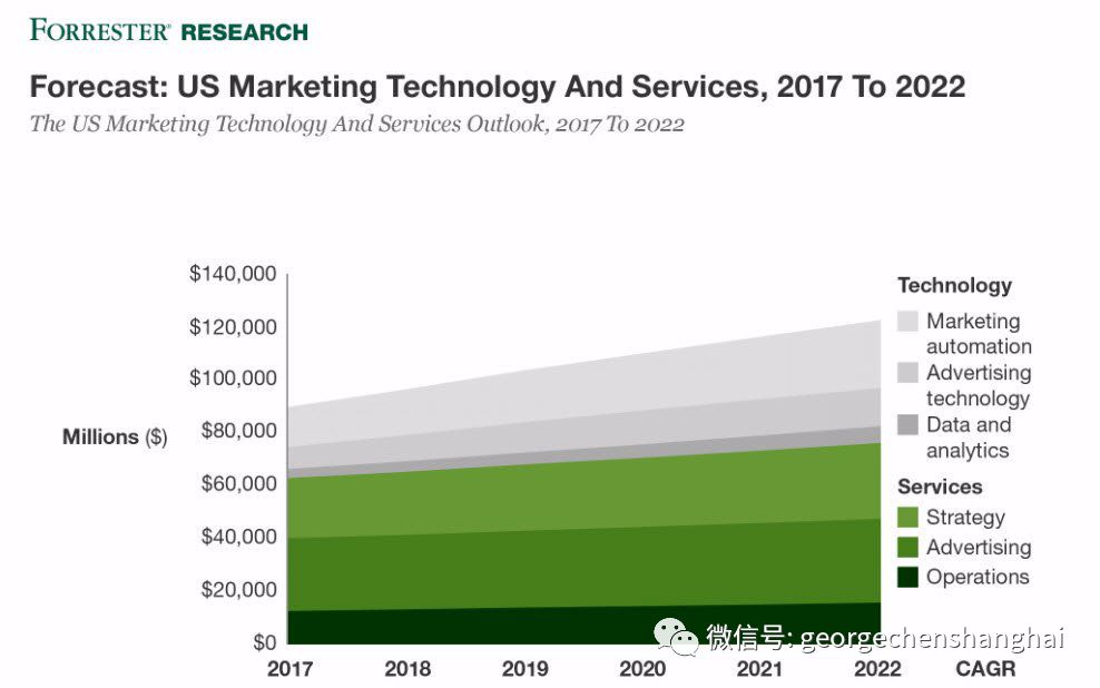 在企業(yè)數(shù)字化轉(zhuǎn)型實(shí)踐中,發(fā)現(xiàn)潛在的以及已有的顧客(消費(fèi)者),跟TA們建立溝通關(guān)系,用精準(zhǔn)的、個性化的方式進(jìn)行互動,從而提高營銷轉(zhuǎn)化效率,提升顧客忠誠度,這些屬于“數(shù)字化營銷”轉(zhuǎn)型的領(lǐng)域。對于這個領(lǐng)域,有些企業(yè)有一些其他叫法,例如“數(shù)字化顧客運(yùn)營”、“用戶大數(shù)據(jù)平臺”等等,其內(nèi)容實(shí)質(zhì)或多或少都屬于數(shù)字化營銷的范疇。 當(dāng)前,不少中國企業(yè)的管理者在推動數(shù)字化營銷轉(zhuǎn)型時,存在著不少誤區(qū),其中最典型的認(rèn)識是: 將數(shù)字化營銷看成是IT系統(tǒng)實(shí)施項(xiàng)目 希望尋找“全能”的數(shù)字化營銷平臺以及系統(tǒng)集成供應(yīng)商 建立數(shù)字化營銷的業(yè)務(wù)流程體系 對這些認(rèn)識,觀點(diǎn)是: 1, 數(shù)字化營銷歸CMO還是CIO管 IT在企業(yè)中的應(yīng)用,從“信息化”向“數(shù)字化轉(zhuǎn)型”變化以來,傳統(tǒng)IT治理模式受到很大挑戰(zhàn),CIO的“傳統(tǒng)邊界”逐漸被業(yè)務(wù)主管侵蝕:基礎(chǔ)設(shè)施(企業(yè)私有云和多云管理、數(shù)字化和數(shù)據(jù)平臺)、網(wǎng)絡(luò)安全以及傳統(tǒng)核心應(yīng)用系統(tǒng)(例如ERP)等仍屬于CIO范疇,然而,越來越多的業(yè)務(wù)部門已經(jīng)走到了信息技術(shù)應(yīng)用的前臺;業(yè)務(wù)和IT的關(guān)系,不再是“需求提出方”和“需求滿足方”的關(guān)系。 根據(jù)Forrester 在2018年的一項(xiàng)研究(下圖),在美國,數(shù)字化營銷相關(guān)的支出已經(jīng)占到企業(yè)營銷支出的30%以上,其中營銷技術(shù)方面支出對總數(shù)字化營銷支出占比,將從目前不到30%在未來五年增長到39%。
