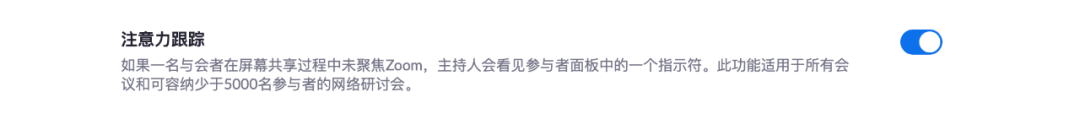 ZOOM還提供了注意力關(guān)注功能,可以看到聽眾或?qū)W生是否注視屏幕或是離開。