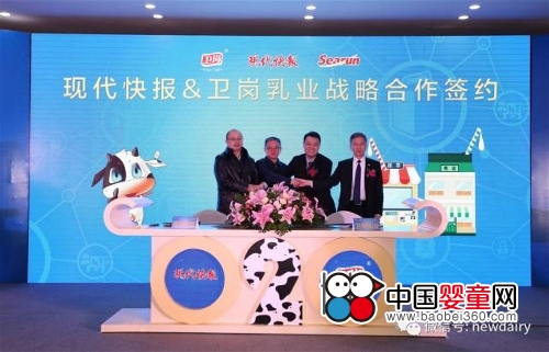 合作儀式簽約現場 近日,睿楠投資旗下南京衛崗乳業有限公司、江蘇順源集團有限公司與江蘇現代快報傳媒有限公司在寧簽署戰略合作協議,宣布將圍繞文化、產品、資源這三個要素,進行全方位的緊密融合。今后,雙方不但將在賣報和送牛奶的渠道方面進行替補式營銷,還將在報刊亭和奶站、自動售書機與自動售奶機上實現空間共享,在文化、產品、資源等方面協同推進、融合發展。 據透露,雙方此次合作是促進服務業價值再造、開放共享經濟下的跨界融合,圍繞實現創新、綠色、協調深度共贏的目標,未來將讓流動的自動售賣機走上街頭、走進新華書店,讓生鮮配送貨上門、代繳費用、酒店式物業管理、快遞代收代發等一系列便民服務走入社區,滿足了人們對 “健康”、“便捷”高品質美好生活的需求,推動 “文化進社區”、“全民閱讀”、“和諧社會”的實現。 蒙牛斬獲“社會責任領軍企業獎”
