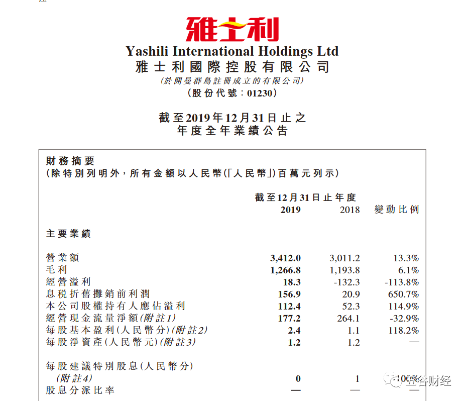 3月26日早間,與蒙牛同步,雅士利國際也發布了截至2019年12月31日止之年度全年業績公告。