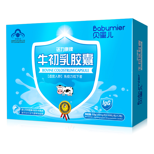 貝蜜兒牛初乳營養品共有兩款——牛初乳固體飲料、及牛初乳膠囊!均選自天然優質原料,源頭嚴格把控,品質更有保障!采用組合蛋白優護系統,營養成份含量更高,品質更純正,由一系列嚴格工藝精制而成,品質過硬,值得信賴!其中,牛初乳膠囊更是一款藍帽保健品,經嚴格檢測,具有免疫調節的保健功能,守護成長健康更給力!