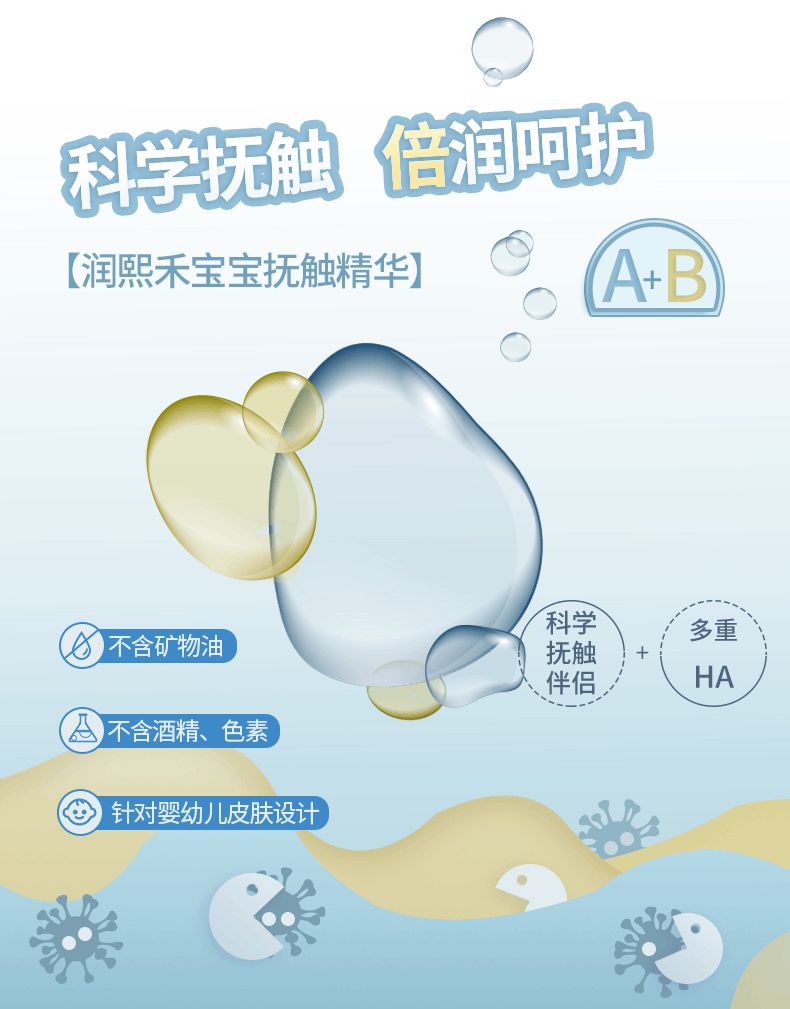 不僅如此,潤熙禾撫觸油的質感也非常清爽,可以減少引發皮膚問題的概率,深層滋潤寶寶皮膚。臻選植物精華補充皮膚營養,讓寶寶感覺清爽舒適,享受媽媽每一次的溫柔撫觸。